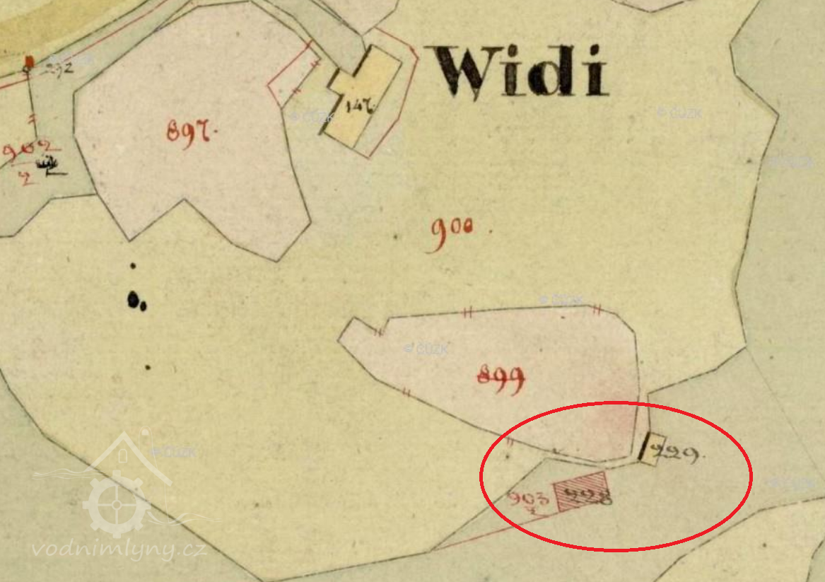 Mlýn-dům čp. 170/st.p. 228 v katastrálním území Křišťanov je zobrazen na mapě Stabilního katastru: Čechy - 3653-1 mapový list číslo 004/ jižně od usedlosti označené "Widi"./