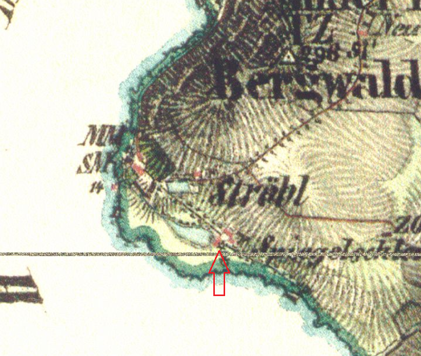 asi 80 m severně od dálničního mostu nad místem hranice s Bavorskem
