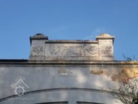 Na štítě papírny je v omítce nápis: Walke a letopočty:
