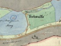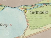 Podle indikační skicy odpovídá č.d. 8 (bývalému) mlýnu na ind. skice označeném jako "TUCHWALKE", a to v místě, kde později