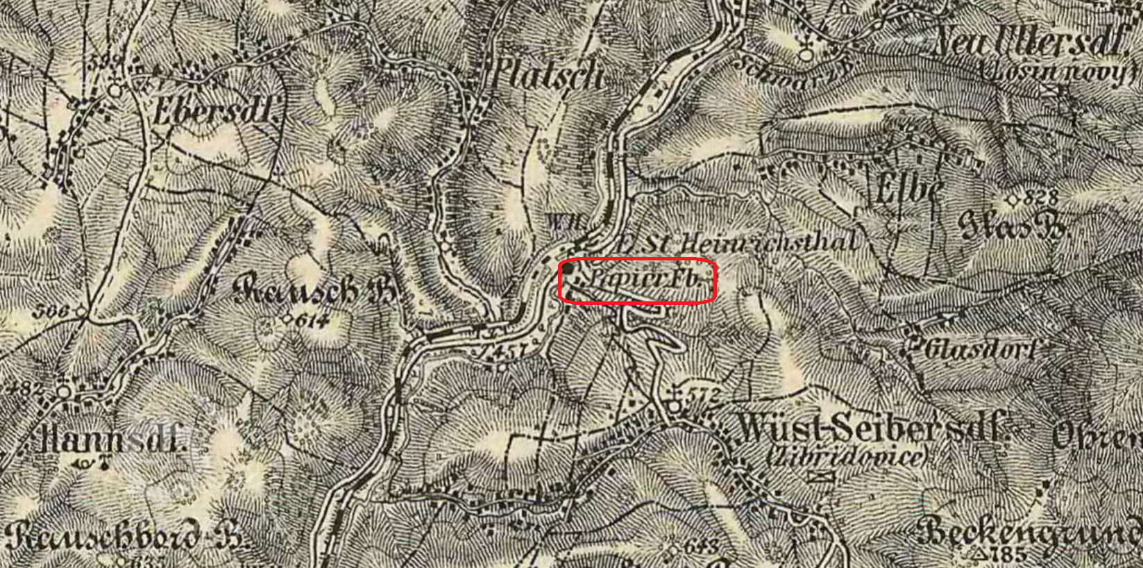 Na podzim 1862 byla v údolí řeky Branné na pomezí katastrů obcí Pusté Žibřidovice, Pleče a Vikantice v místech vodního mlýna založena továrna na výrobu papíru (papírna) s dělnickou kolonií s názvem Jindřichov (něm. Heinrichsthal), která byla administrativně přiřazena k obci Pusté Žibřidovice. Zakladatelem a prvním majitelem papírny byl Josef Abrahám Winternitz,který po finančních těžkostech prodal v lednu 1864 papírnu za 180.000 rakouských zlatých Heinrichu Kaiserovi. V dubnu 1875 vytvořil rytíř Martin Kink veřejnou obchodní společnost s názvem „Martin Kink & Co, c. k. privilegovaná strojová papírna v Jindřichově“ (1879).