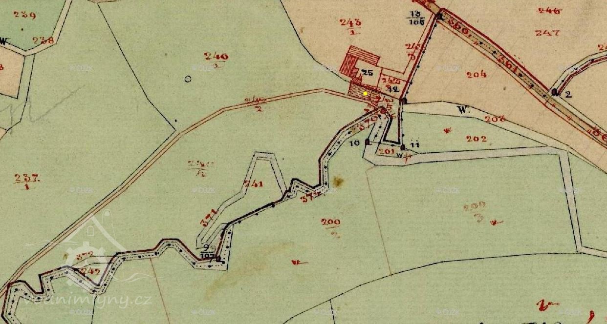 Náhon, který začínal nedaleko pod sousedním mlýnem je v terénu stále dobře zřetelný.