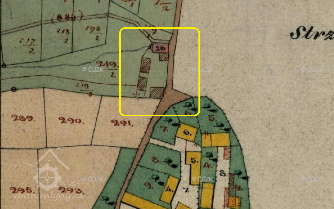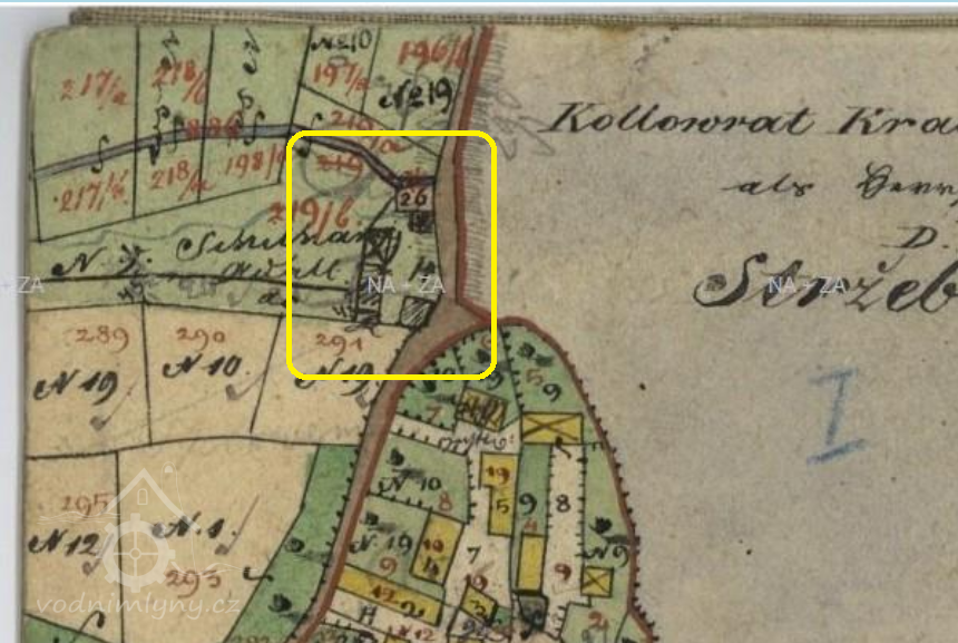 Popis1930: 1 kolo na svrchní vodu, hltnost 0,08 m3/s, spád 5 m, výkon 3,6 HP