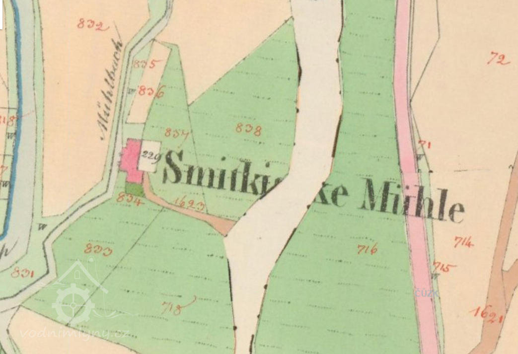 Popis1930: 1 kolo na spodní vodu, hltnost 0,54 m3/s, spád 2,1 m, výkon 6 HP