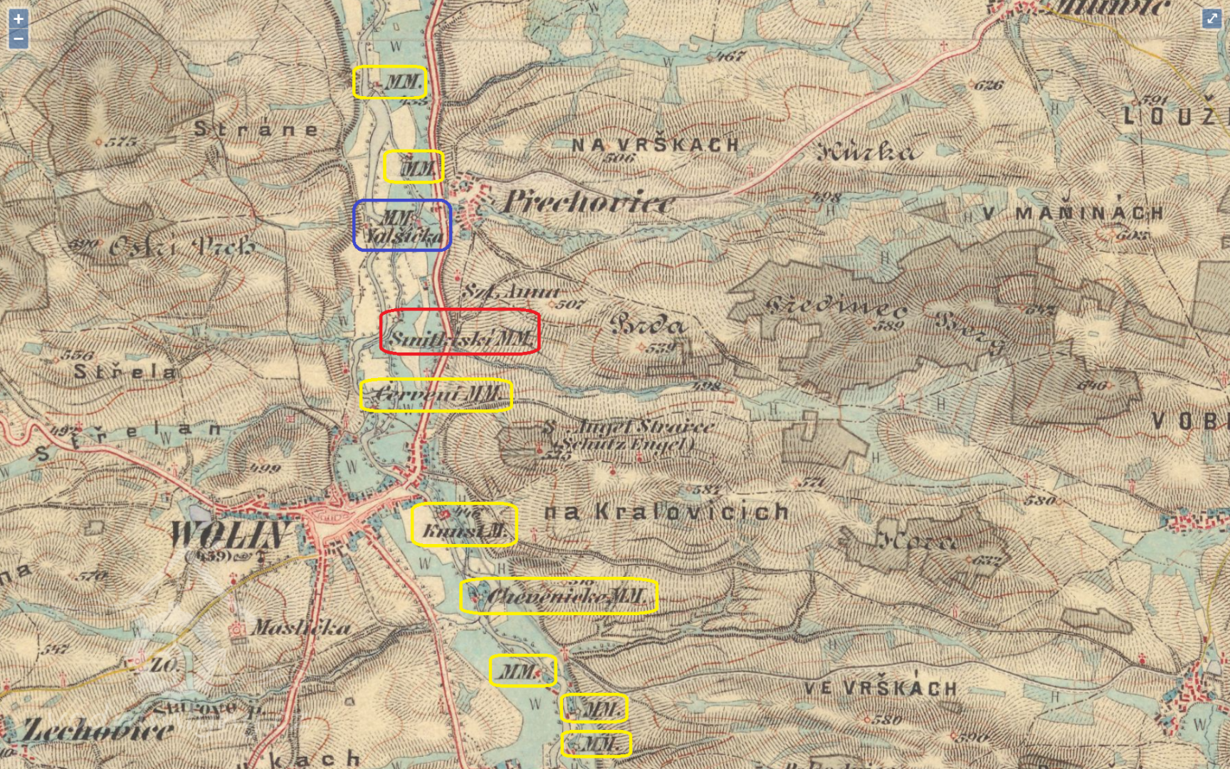 Na mapě II. vojenského mapování mlýn zakreslen správně, avšak popiska se dostala až k Podveskému mlýnu v Přechovicích.