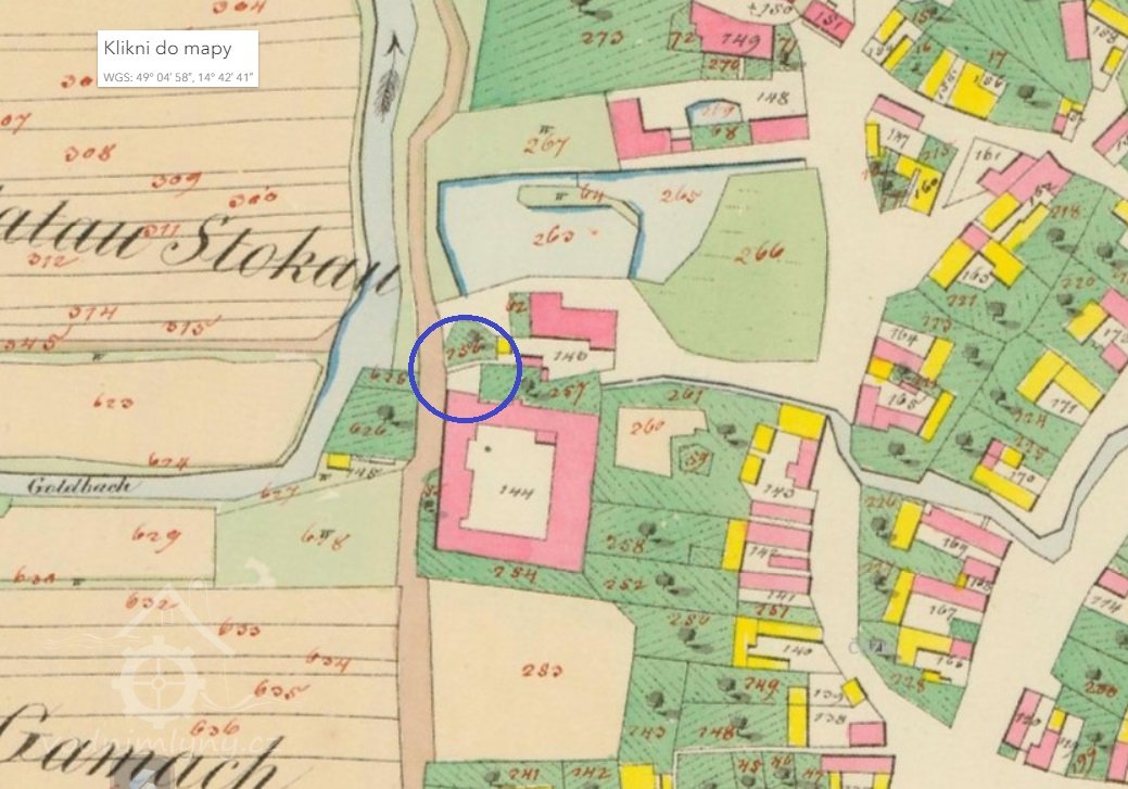 Popis1930: 1 kolo na svrchní vodu, hltnost 0,112 m3/s, spád 3,35 HP, výkon 3 HP