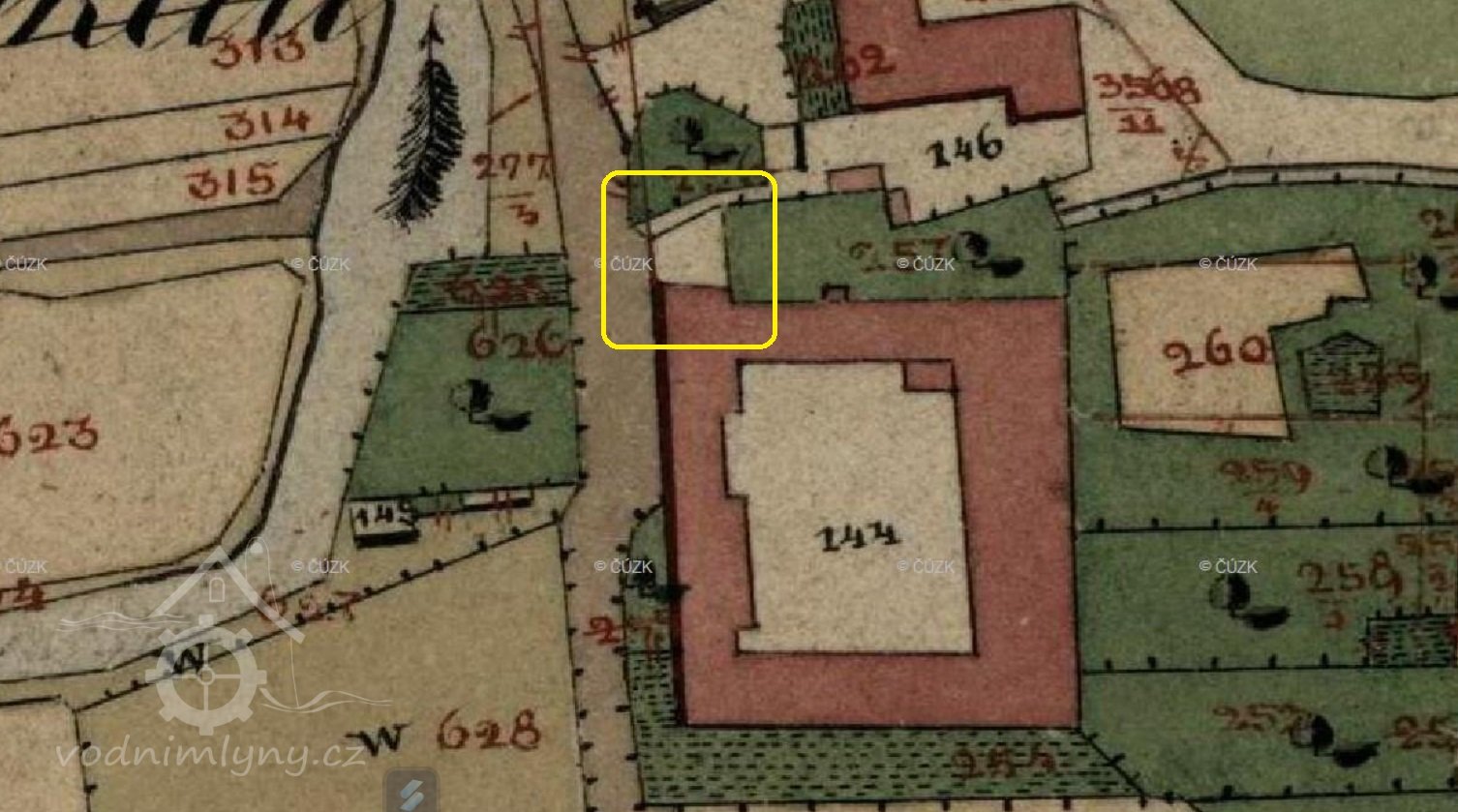 Mlýn naprosto netradičně tvořící jedno nároží zámku (spíše však panského dvora).