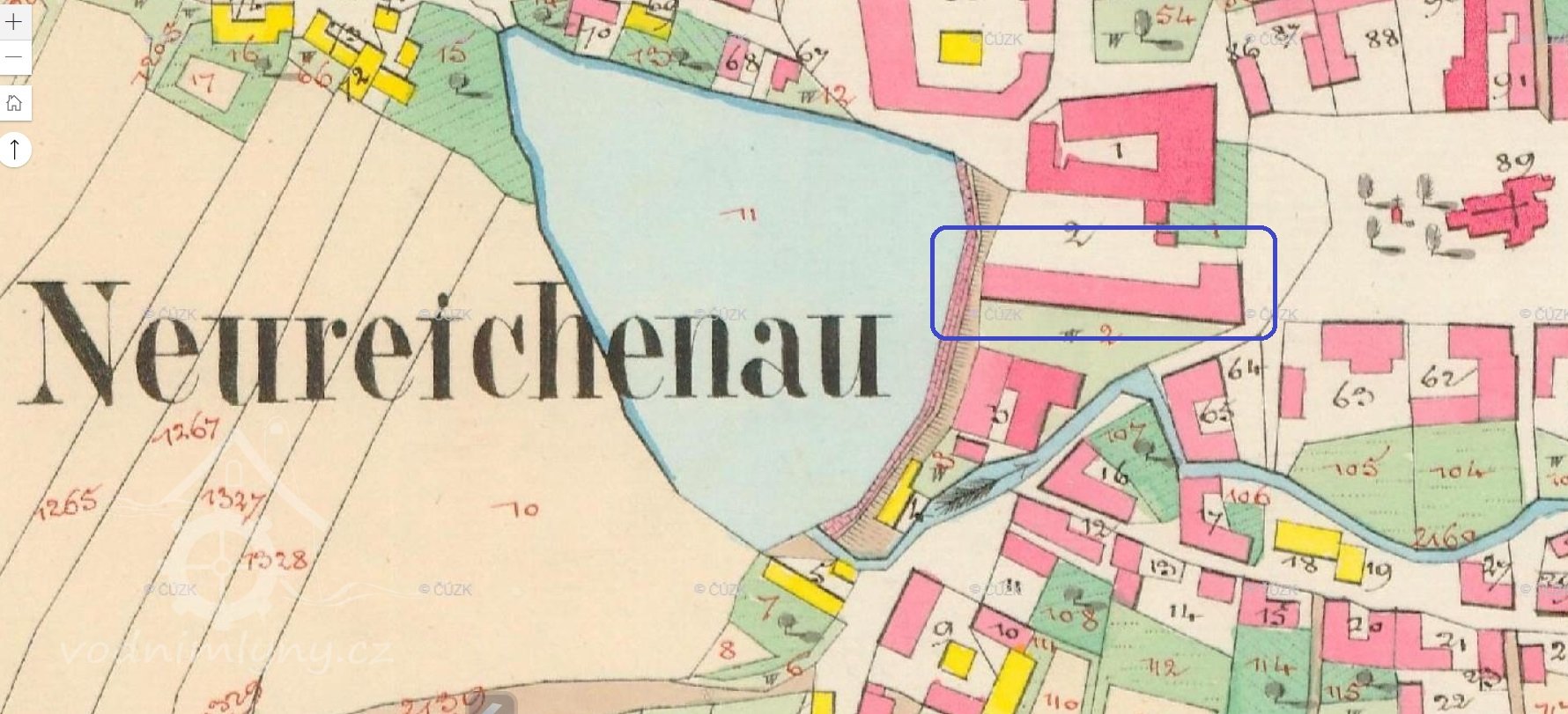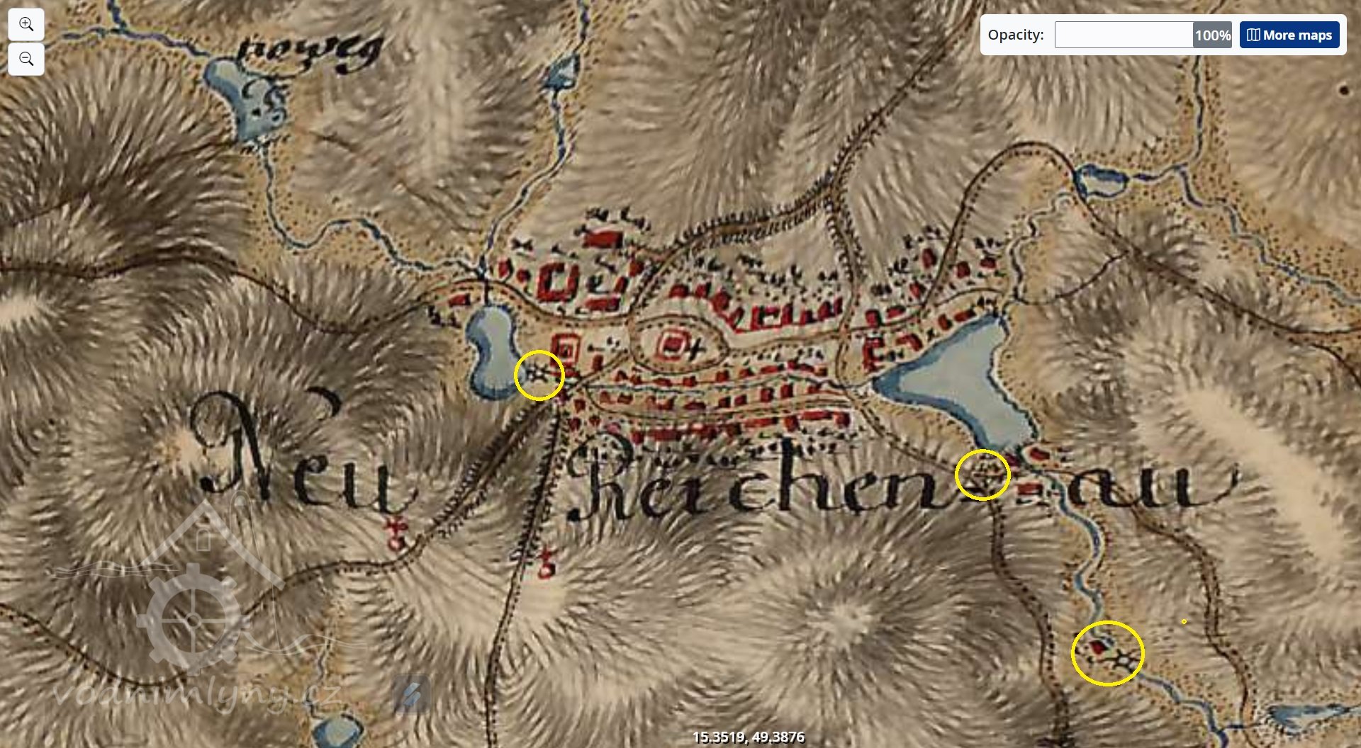 80 m západně od kostela Nanebevzetí P. Marie v Novém Rychnově