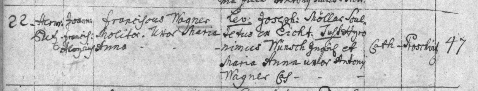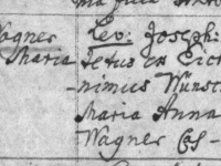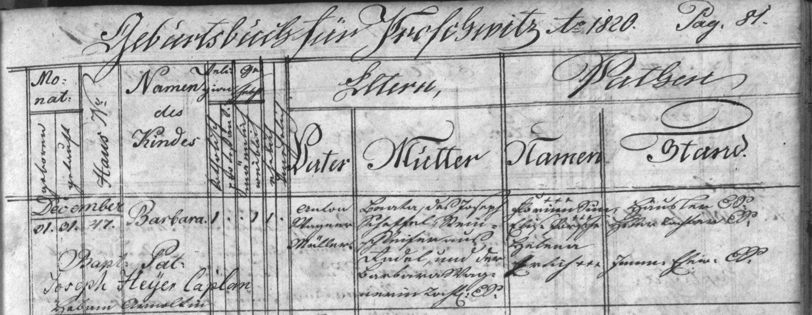 Od roku 1815 při narození syna Antona zde byl zmiňován mlynář Anton Wagner a manželkou Beatou, rozenou Scheffel.  Do roku 1824 se jim narodilo 5 dalších dětí, Franz (1816), Maria Anna (1818), Barbara (1820), Theresia (1822) a Margaretha (1824). V letech 1827-1831 uvádějí matriky jako manželku mlynáře Klaru, rozenou Wagner, dceru tkalce odsud z Proseče č. 44. Z druhého manželství vzešly děti Klara (1827), Josef (1830) a Stephan (1831).