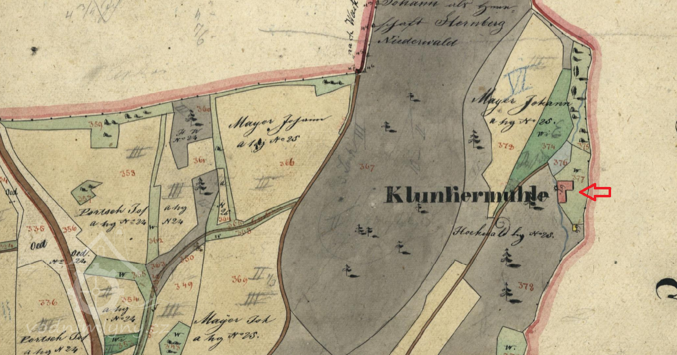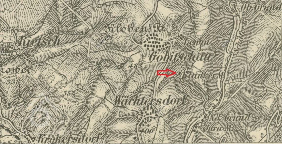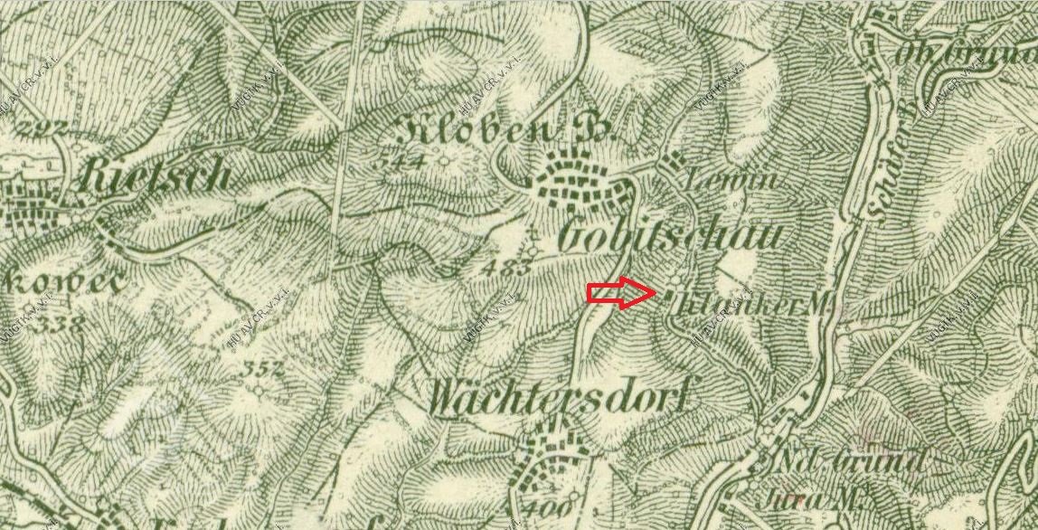 Zcela zaniklý mlýn nedaleko odvodňovací štoly starého dolu, která je v současnosti využita jako vodní zdroj pro Šternberk.