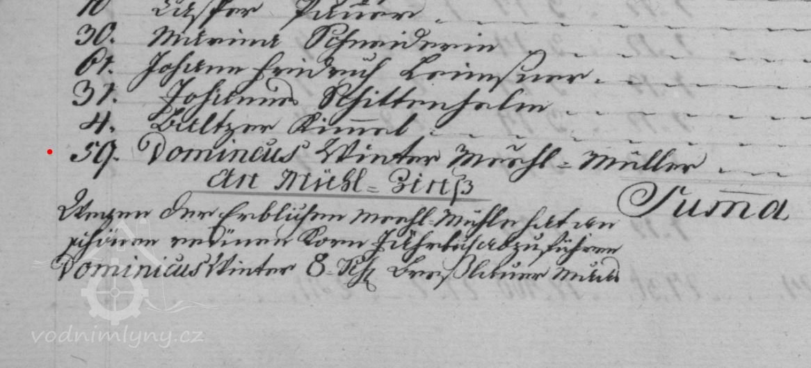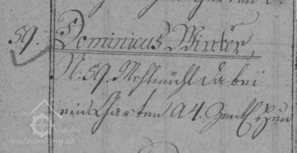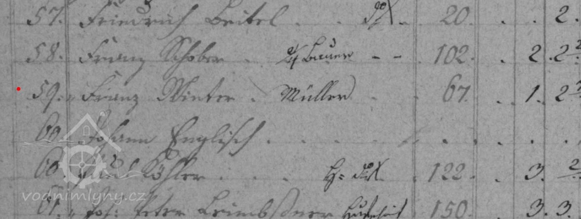 V letech 1786 - 1789 mlýn vlastní mlynář Dominicus Winter, v roce 1802 mlynář Franz Winter.