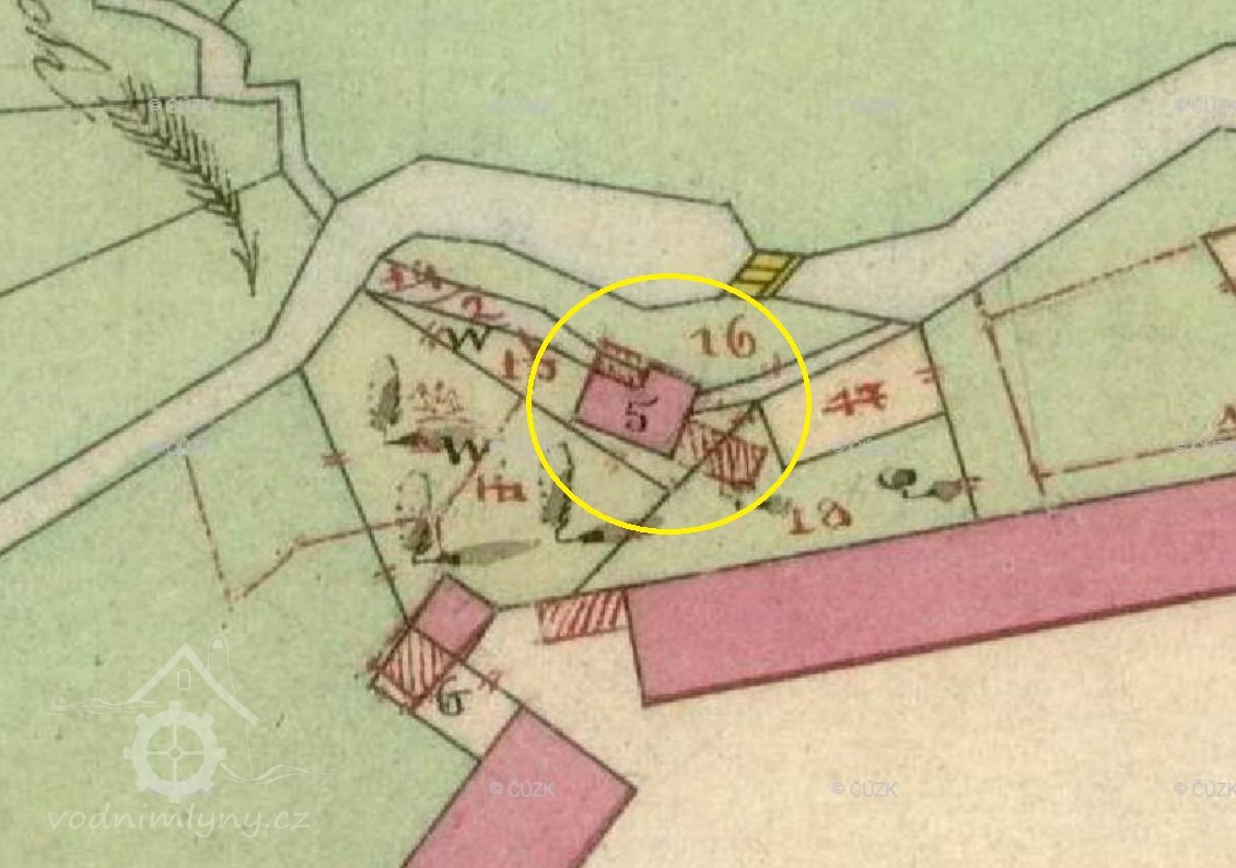 Popis1930: 1 kolo na svrchní vodu, hltnost 0,25 m3/s, spád 1,6 m, výkon 3 HP