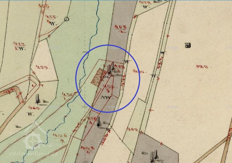 Popis1930: 1 kolo na svrchní vodu, hltnost 0,05 m3/s, spád 7,3 m, výkon 3,2 HP