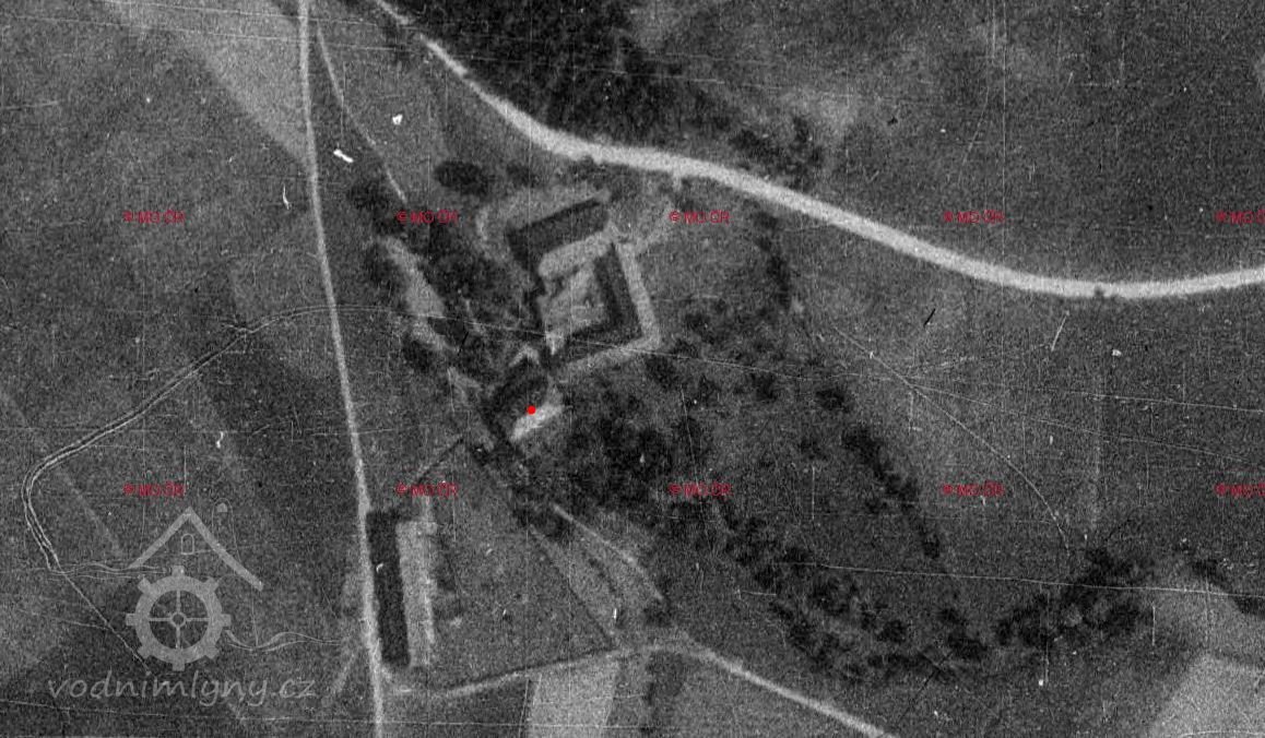 Malý mlýn při velkém hospodářství, zbořený po 2. sv. válce.