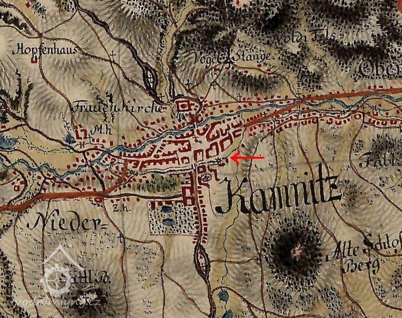 50 m severně od kostela sv. Jakuba v České Kamenici