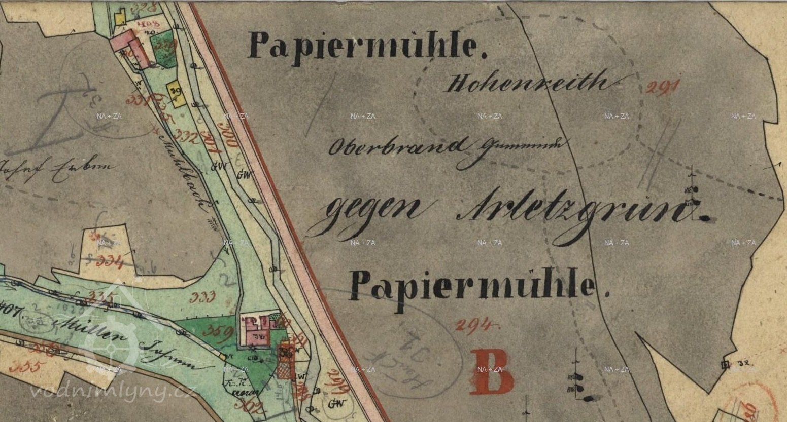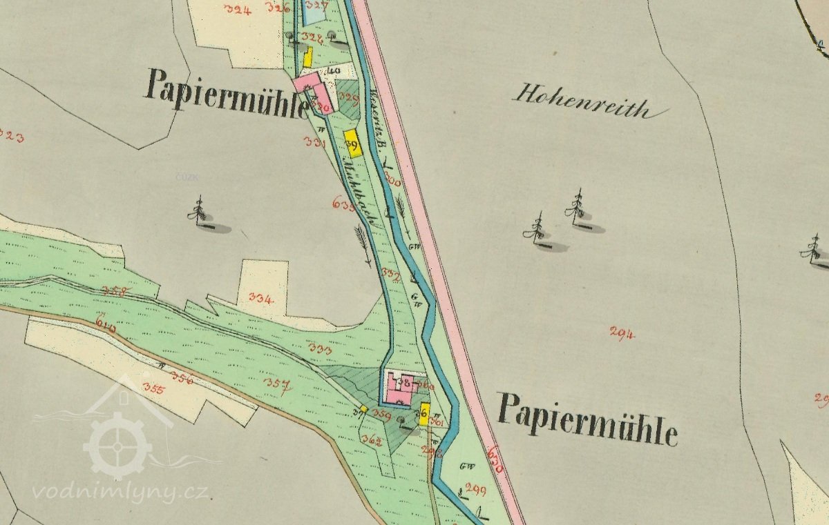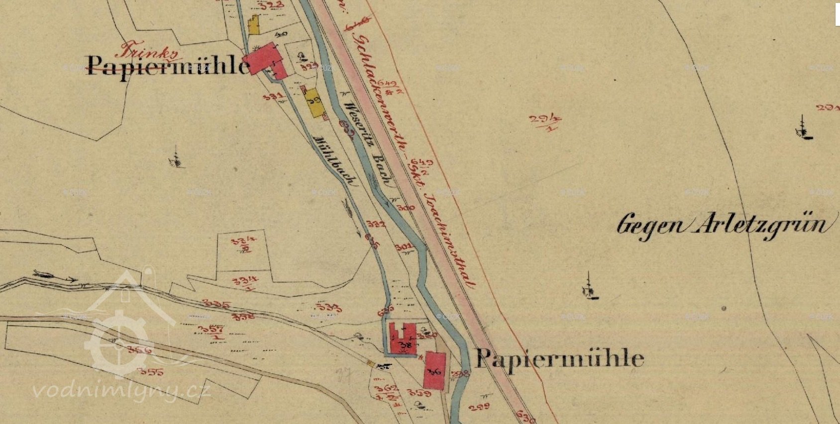 Další mlýn byl vlastně dvojmlýnem. První zmínka pochází z roku 1546, kdy jeden z těchto mlýnů (horní), fungující jako papírna, zakoupil Adam Abt. Ten zavedl výrobu silných papírů, které byly nejkvalitnějším papírem vyráběných na území Českého království. Výroba papíru se udržela až do počátku dvacátého století. Veškerá produkce byla tehdy vyvážena do města Leiden v hrabství Holland, kde se jeden arch rozdělil na dva až tři. Ze vzniklého tenkého papíru se potom vyráběly bankocetle – tedy bankovky Rakousko-Uherské monarchie. Rozborem papíru partitur bylo zjištěno, že na papír z Jáchymova psal svá díla např. J. S. Bach. Takovou perličkou bylo, že tento dvojmlýn stál na jazykové hranici. Zatímco v dolní pile se mluvilo Egerštinou (německý dialekt z Chebska), v horní pile Abtů se hovořilo Jáchymovským krušnohorským nářečím. Horní papírna sloužila svému účelu do roku 1931. Poté byla ještě v provozu pila poháněná vodním kolem o průměru 4 metry a s kapacitou 500 litrů. Šlo tehdy o nejvýkonnější vodní kolo v širokém okolí. Z prostor papírny se stala lázeňskými hosty z Jáchymova vyhledávaná restaurace a z Papirmühle Abt se tak stal Trinksmühle. Restaurace byla po roce 1989 obnovena a jako Restaurace U Vlčků funguje dodnes. Dolní pila byla v provozu do poloviny dvacátého století.