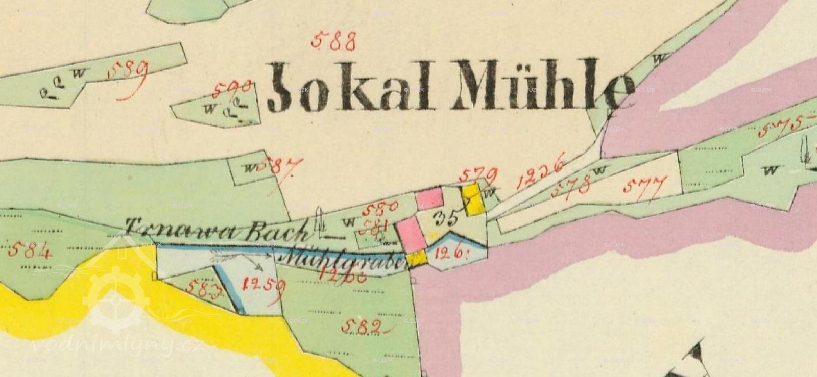 PopisV r. 1930 zde bylo 1 kolo na střední vodu, průtok 0,272 m3/s, spád 2,5 m, výkon 4,8 k. (RR)