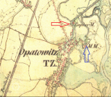 850 m severně od kostela sv. Vavřince v Opatovicích