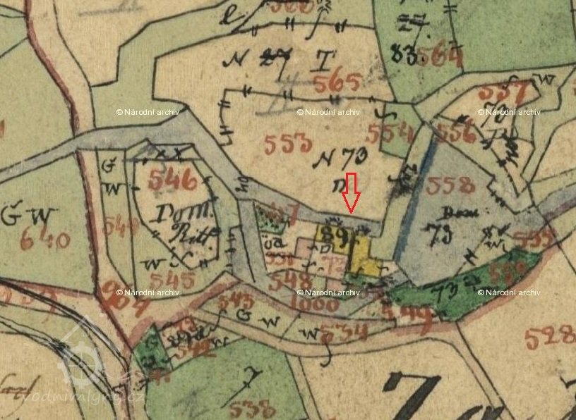 4té Z onoho k té pile a mlejnu přináležejícího políčka hned proti hrázi ležící pod 656 □ sáhů neb pod jednu míru 3 ¾ věrt. jen to, co všechny jiní emphiteuti, totiž všechny cís. kr. daně dle učiněné repartice vypsané sou nebo budou, tak jako domácí daně neb které se řemesla neb osoby týkat budou, řádně beze všeho z vlastního vybejvati a naproti tomu s ním neobmezeně vládnouti.