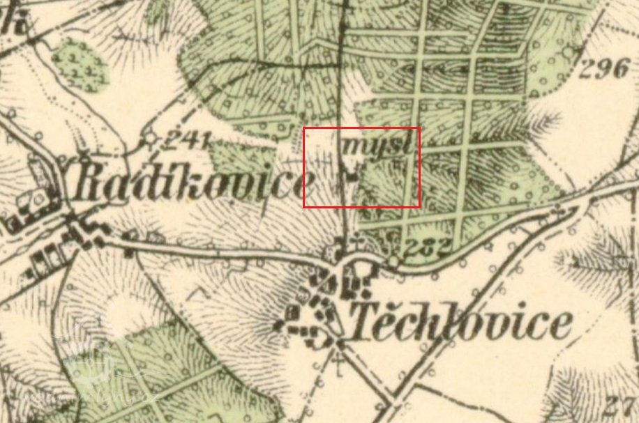 Mlýn byl v poslední čtvrtině 19. století změněn na myslivnu, na III. vojenském mapování je objekt vyobrazen jako myslivna.