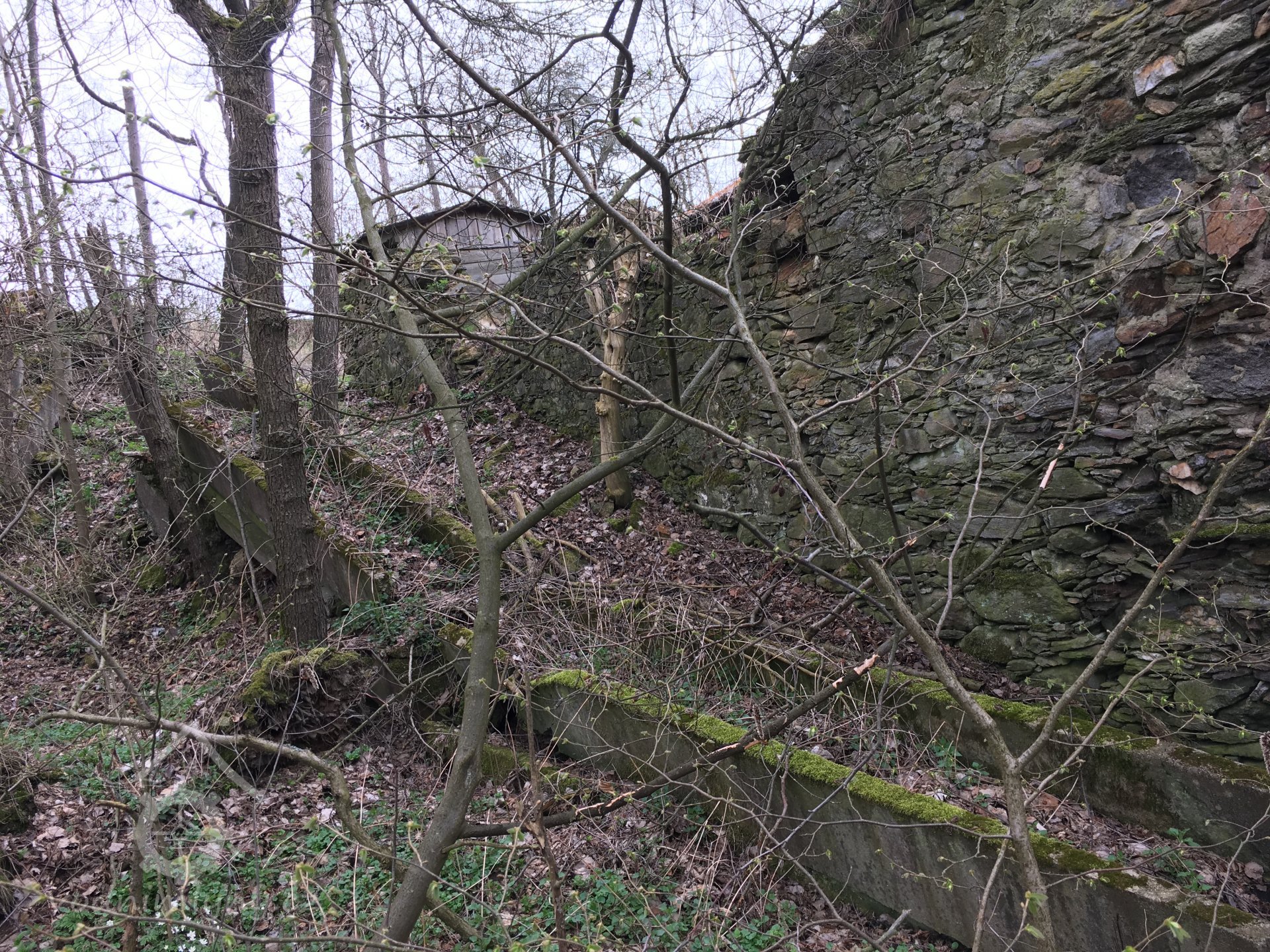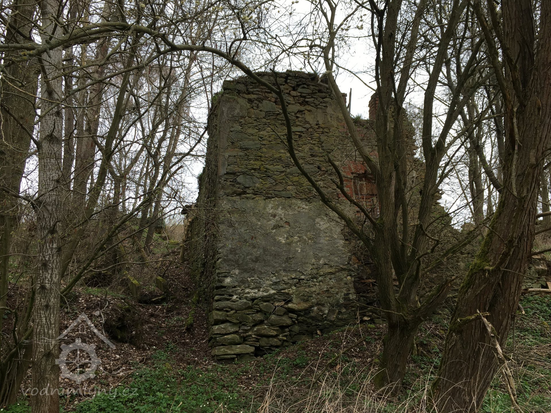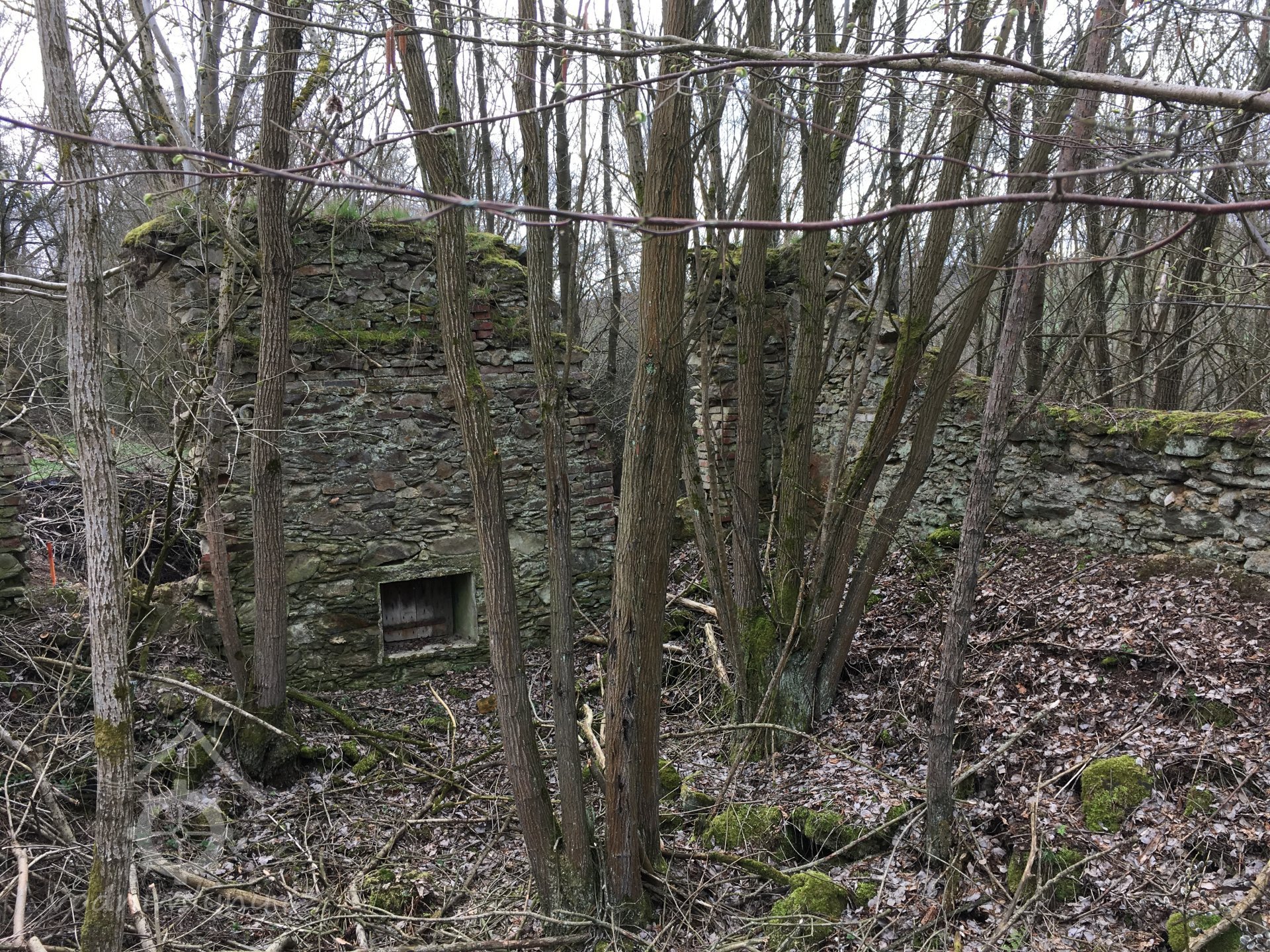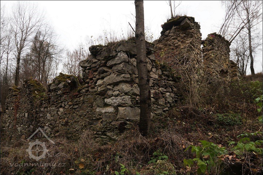 Zřícenina mlýna vystavěného před rokem 1800 jako jeden z mnoha provozů v okolí Mnichova u Poběžovic.