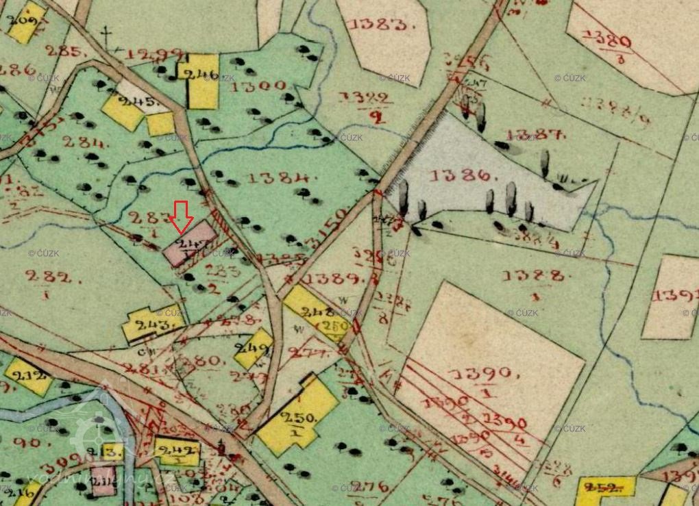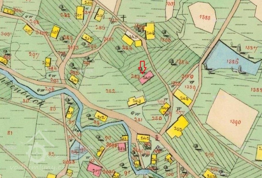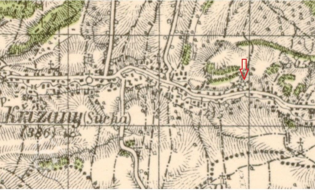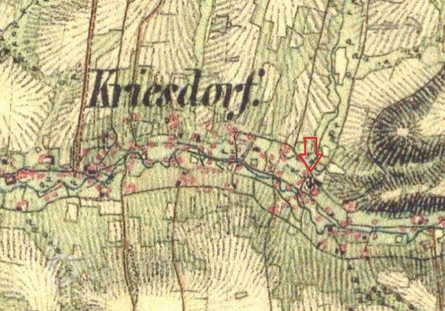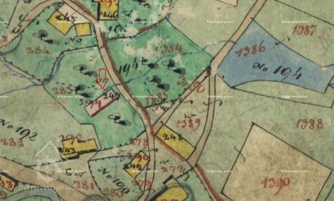 Mlýn je zakreslen na II. vojenském mapování a na mapách stabilního katastru z roku 1843, na kterých je vyobrazen jako zděná budova. V té době byl jednou z mála zděných budov v obci Křižany.
