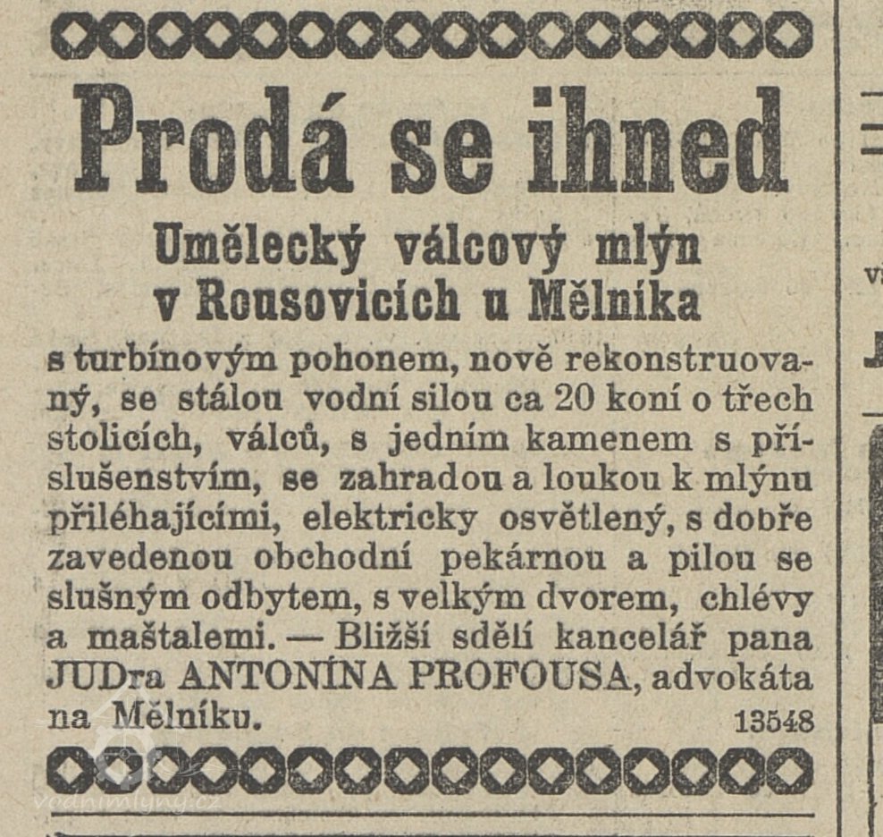 na mlýn se přiženil Boleslav Jareš, syn Josefa Jareše, mlynáře v Proudkovicích na Vltavě