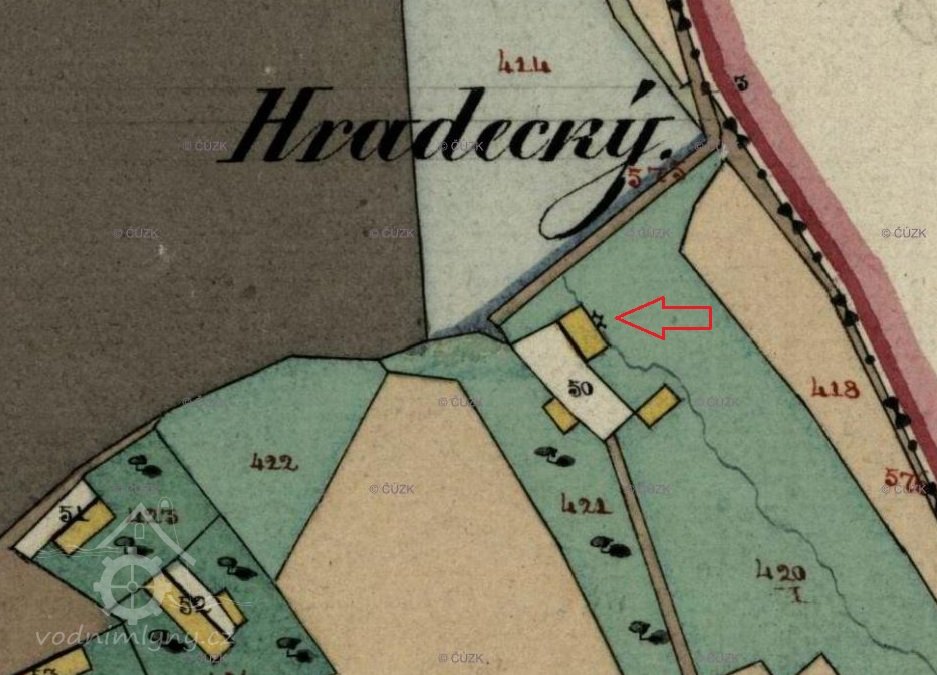 Mlýn je zakreslen již na mapě I. vojenského mapování z let 1764-1768, dále na mapě II. vojenského mapování a na mapách stabilního katastru.