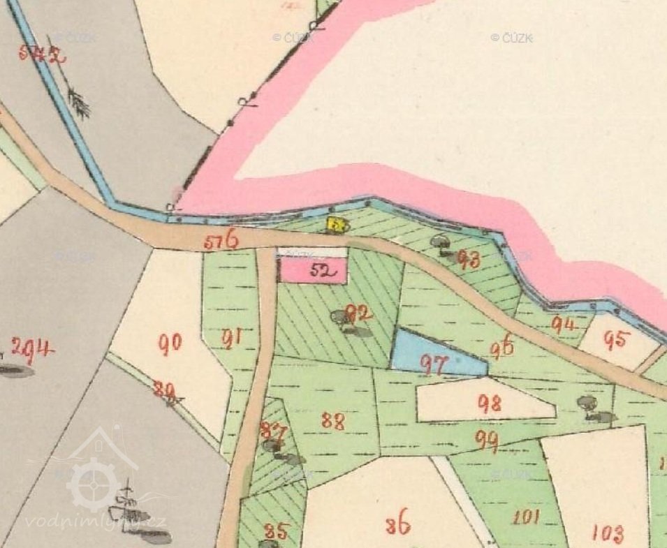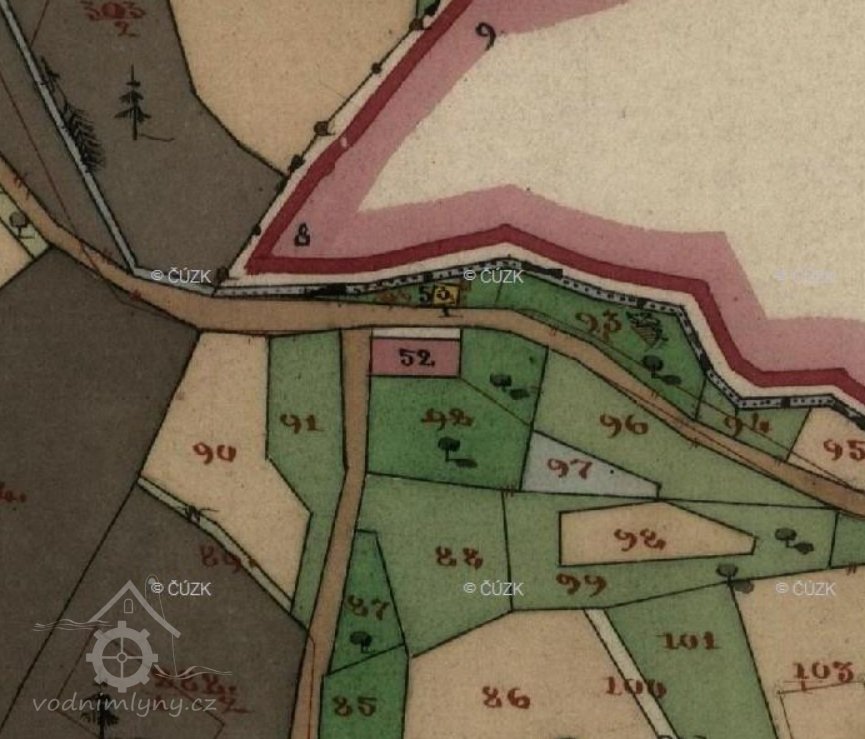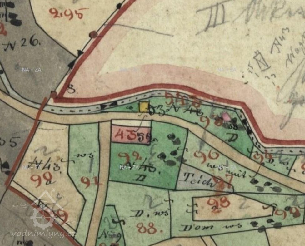 (Na katastrálních mapách je ale nad objektem zakreslena malá vodní nádrž trojúhelníkovitého tvaru, což by mohlo značit, že zde bylo něco s vodním pohonem.)