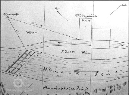 V roce 1873 byl u mlýna zasazen vodní cejch. Cejch byl vytvořen z borového kmene, do kterého byla zaražena kovová spona s letopočtem 1873 a s písmeny I. G. – Iohann Glosaer. Kl s cejchem byl po celé výšce obezděn kameny. Mlýn měl tehdy 3 mlýnská složení a pilu, pohon na 4 vodní kola na spodní vodu.