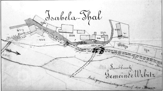Vodní provoz sloužící původně k jiným účelům byl v roce 1872 přeměněn na obilní mlýn. Stál na levé straně řeky Mže v údolí nazývaném Izabelino, nyní Máchovo. Na místě mlýnice stojí rekreační objekt 0186E.