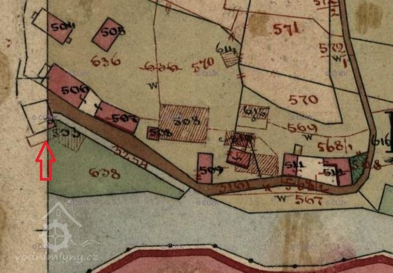 PopisV roce 1930 zde bylo vodní kolo na spodní vodu o hltnosti 1,66 m3/s a výkonu 8 HP, spád 1 m.