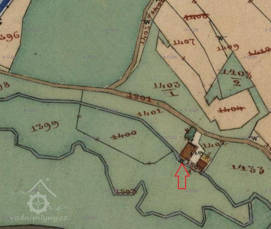 Dle vyobrazení na mapách stabilního katastru se mlýn skládal ze dvou drobných objektů ze spalného materiálu.