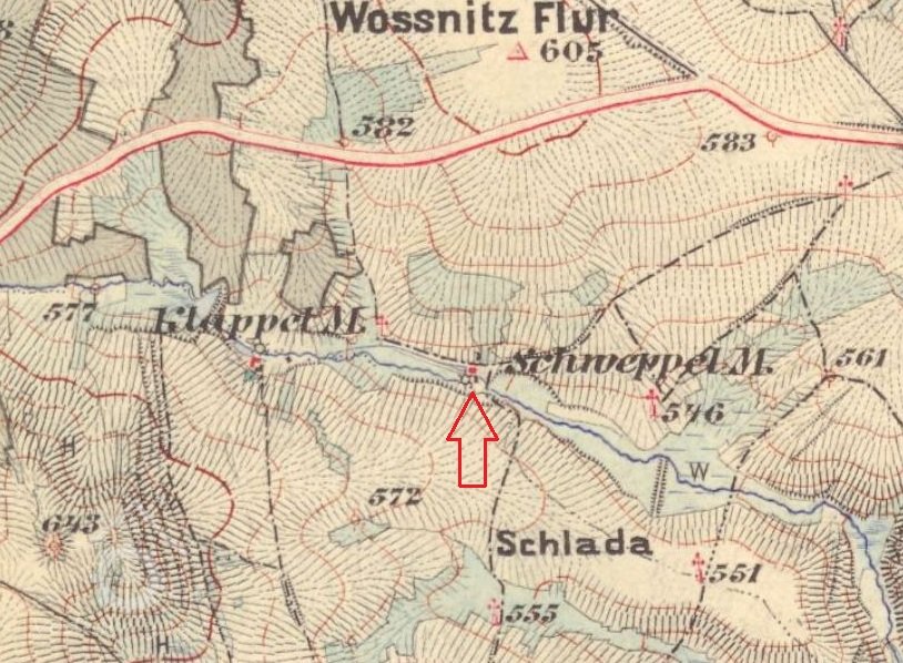 Dle sčítání obyvatel z roku 1910 byl majitelem Josef Weidl, narozený roku 1851 ve Štokově. Žil zde s manželkou Katharinou a dětmi. Nejstarší syn Johann (narozen 1879) byl na otcově mlýně mlynářským pomocníkem. Dále zde byly mladší děti Josef, Maria, Anna a Rozálie. V hospodářství byl chován 1 kůň, 7 kusů hovězího dobytka, 8 prasat a 62 kusů drůbeže.