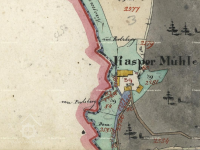 1748 Tereziánský katastr - mlýn s pilou o 1 kole na nestálé vodě (1. písemná zpráva o mlýnu)
