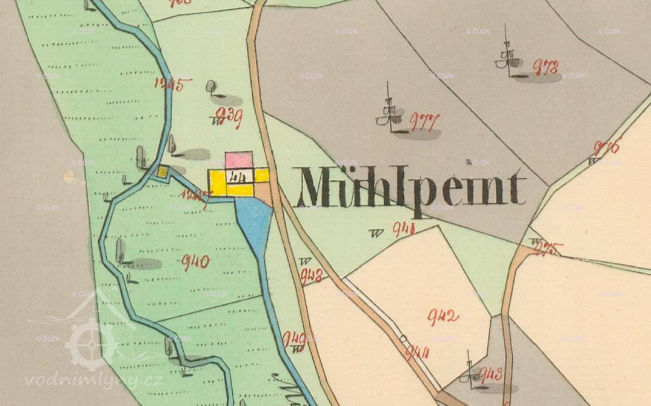 Popis1930: 1 kolo na svrchní vodu, hltnost 0,06 m3/s, spád 4,6 m, výkon 2,4 HP