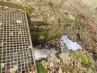 Voda zadržována pevným jízkem dlouhým 4,2 m (silný dřevěný kmen na kamenném podkladu, u břehu opatřen kamennými křídly), náhon rozšířen ve strž, odkud voda vedena stavidlem na mlýnské kolo na svrchní vodu a odtud odpadá do strouhy, která se 200 m pod mlýnem spojuje s jalovým potokem.