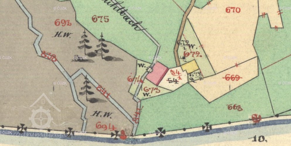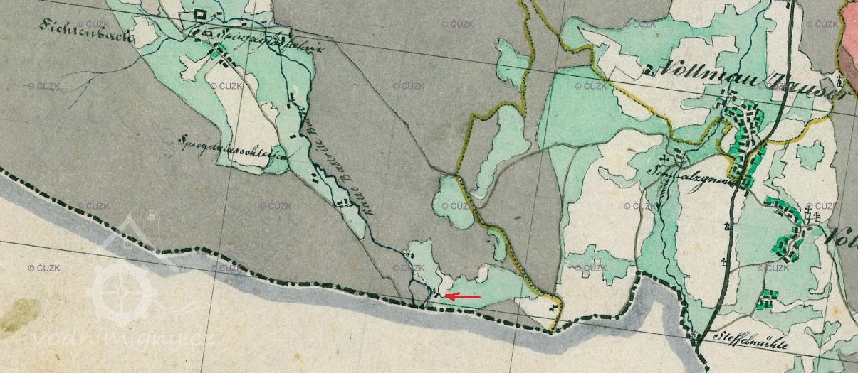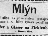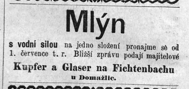 V r. 1839 ve Fichtenbachu vedle sklárny, brusírny a leštírny stálo 25 domů se 151 obyvateli. Celkem bylo na asi 5 km dlouhém úseku Chladné Bystřice asi 21 provozů poháněných vodou. Mlýn byl posledním provozem před hranicí.