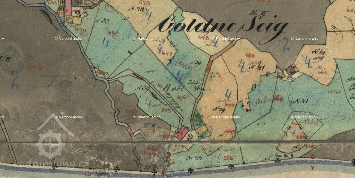 PopisSeznam a mapa vodních děl Republiky československé 1930: Studená Bystřice - Folmava 39 - Karel Pangratz - mlýn - 1 kolo na svrchní vodu - 0,105 – 3,3 – 3.