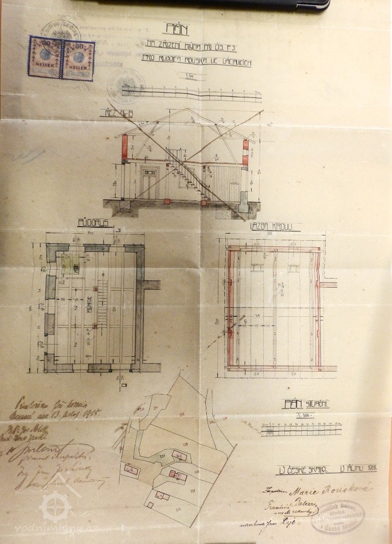 8.10.1918 Marie Rousková podává žádost o zřízení mlýna adaptací bývalé stodoily, původně zamýšlen jako kamenný a s naftovým motorem