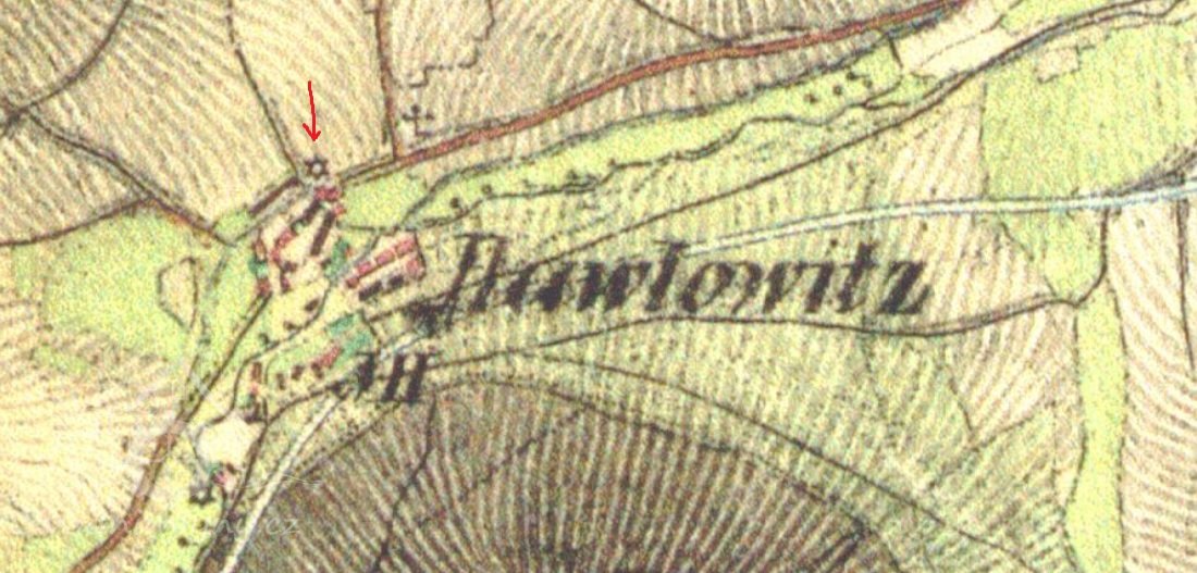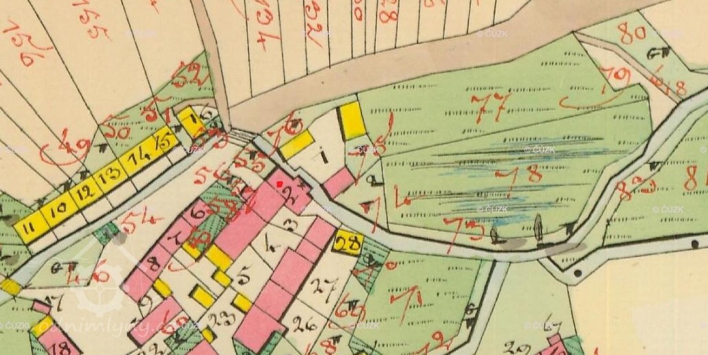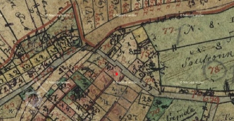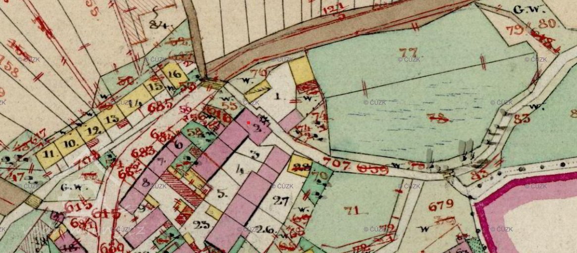 Zobrazen na I. vojenském mapování – josefském ( 1764-1768 a 1780-1783 ). Originální mapa, indikační skica i otisk stabilního katastru v roce 1838 zaznamenávají  nespalnou budovu s jedním kolem, majitelem Václav Solfronk.