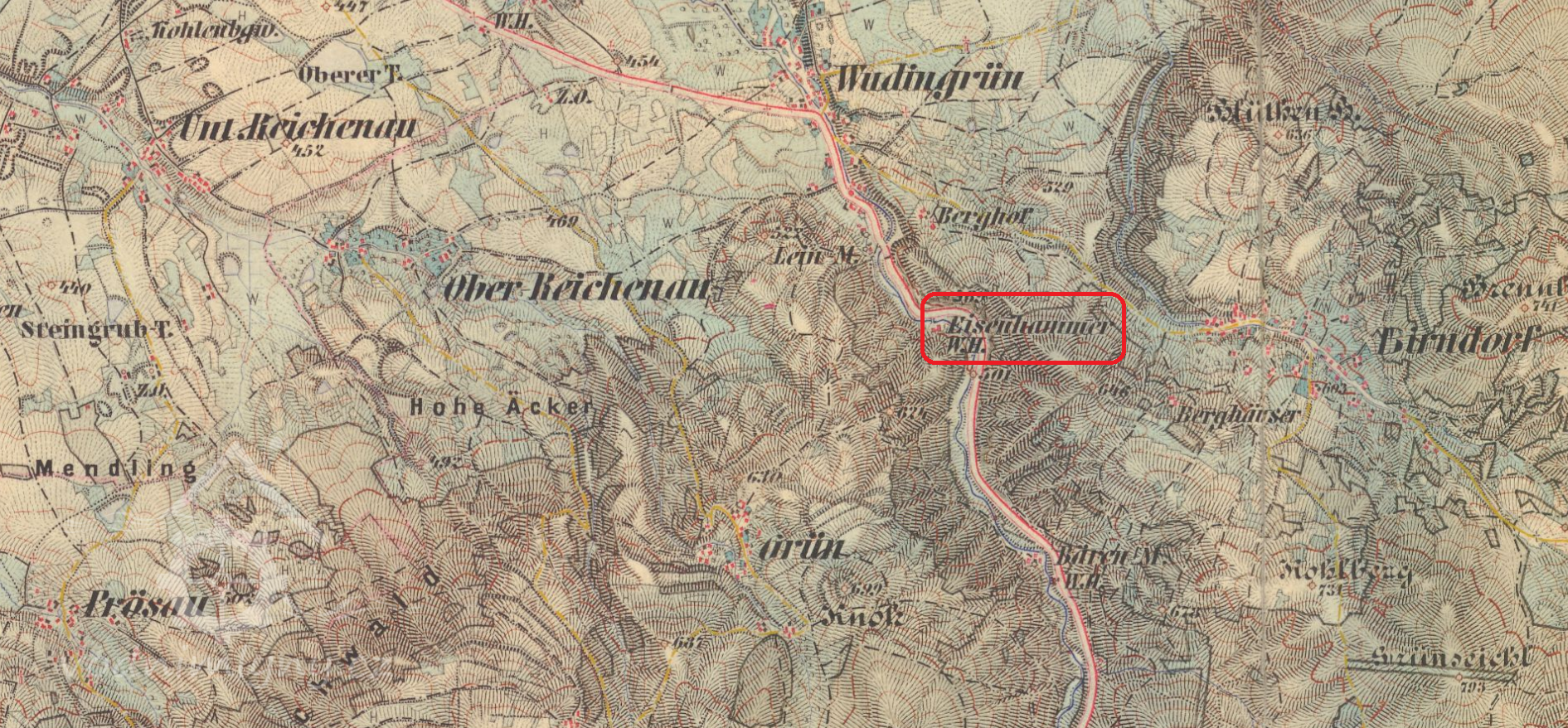 1785 Jaroslav Schaller Topographie des Königreiches Böhmen: „…dle starých zpráv zde prý býval Železný mlýn“.