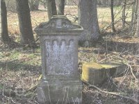 U mlýna Boží muka s nápoisem: Errichtet / zum Ehre Gottes / vom Albert und Maria / Hanika / in der Neumühle / 1868