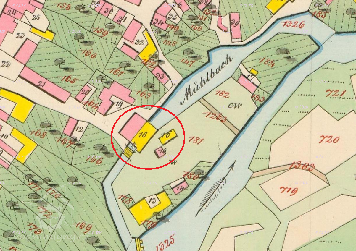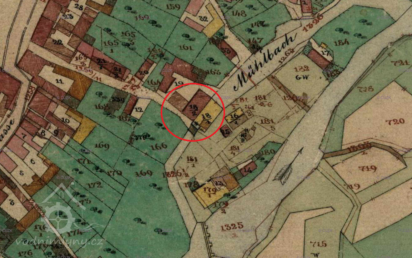Mlýn byl situován na krátkém náhonu z Úhlavy, který tak vytvářel ostrov.