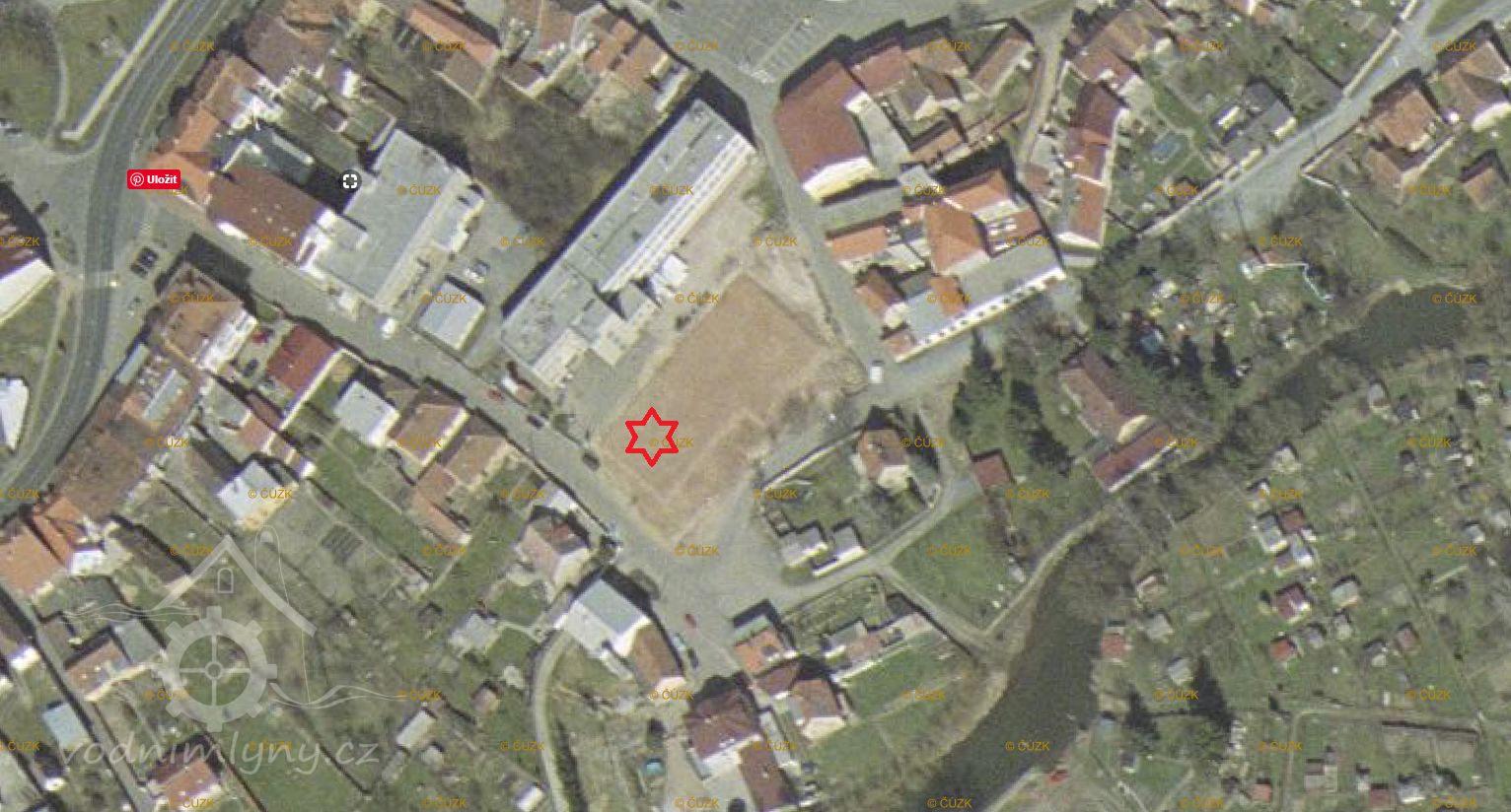 Velký mlýn na ostrově pod přeštickým náměstím, zbořený mezi lety 2003-2005.