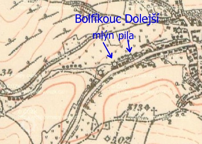 Dle Urbáře z roku 1721 platí daň za oba Bolfíkouc mlýny společně oba mlynáři Jan i Matěj.