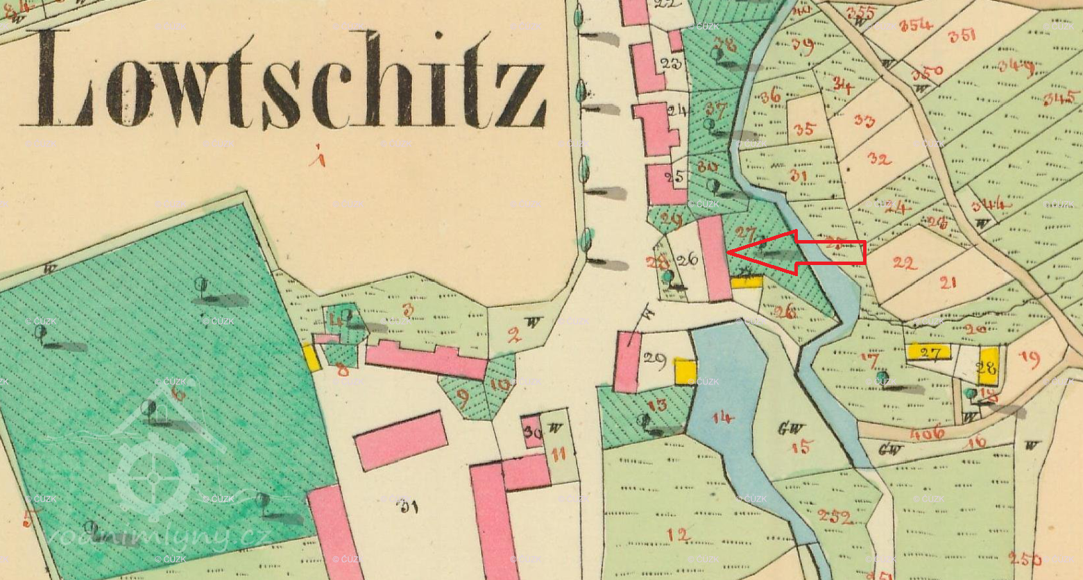 1651 Soupis poddaných podle víry: mlynář Kašpar (29 let), žena Kateřina (32), synové Tomáš (14), Jan (12), dcery Dorota (4), cizopanská, Anna (2), všichni poddaní katolíci