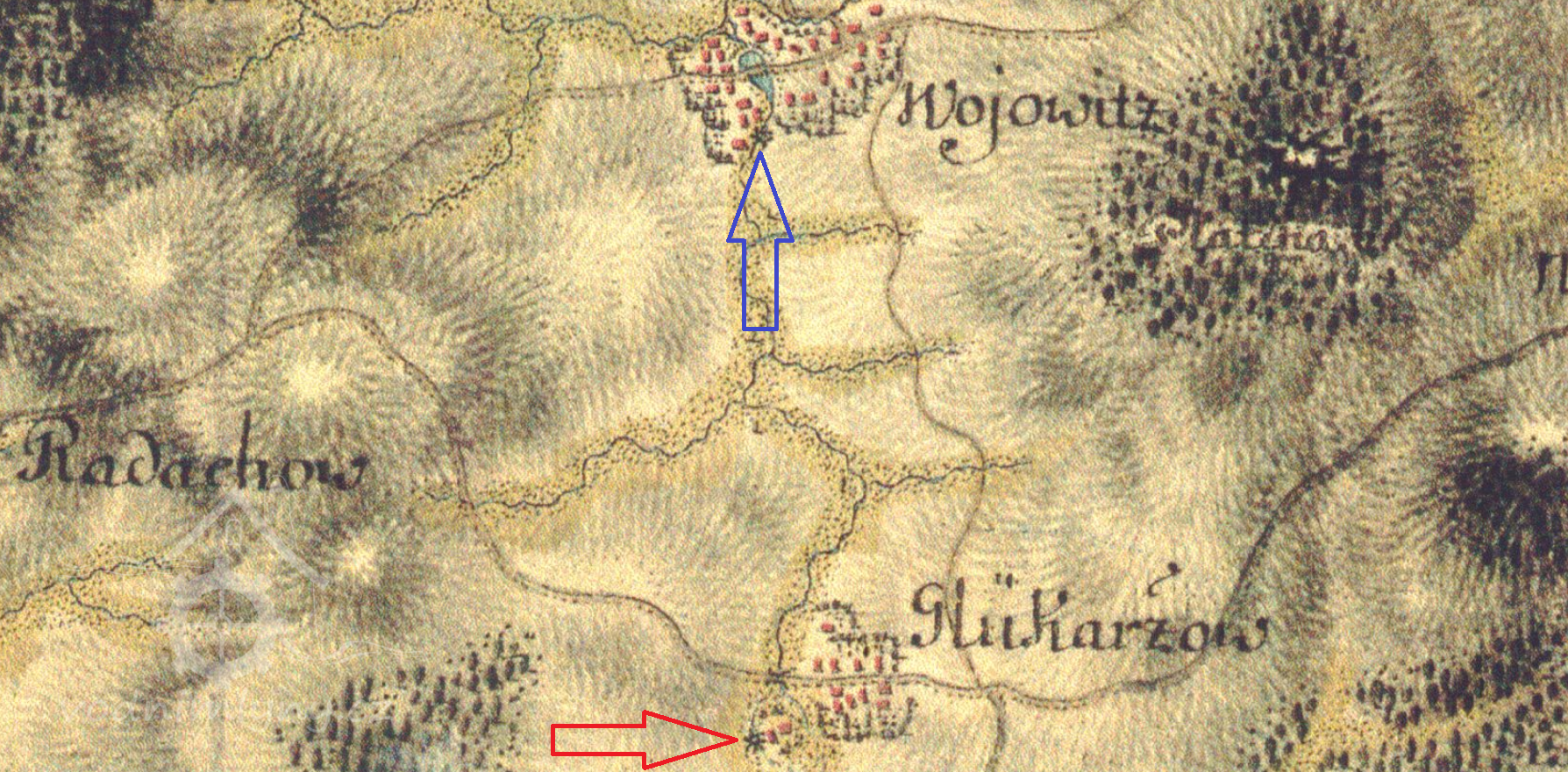 1933: voda vzdouvána stavítkem 70 cm širokým a 51 cm vysokým na Bližanovském potoce, náhon 400 m dlouhý, široký 2 m, hluboký 0,6 m, před vantroky se rozšiřuje na 7 m. Vantroky 3,10 m dlouhé, betonové, šířka 1 m, hloubka 0,77 m, na konci zřízeno závodní stavítko, dřevěné dvoudílné, pravý díl o šířce 53 cm a výšce 69 cm slouží k pouštění vody na kolo, levý 40 cm široký a 71 cm vysoký slouží k odlehčování přebytečné vody do vodní komory. Pomocí kluze se voda přivádí na kolo, odpadní stoka se spojuje s potokem 80 m po mlýnem.