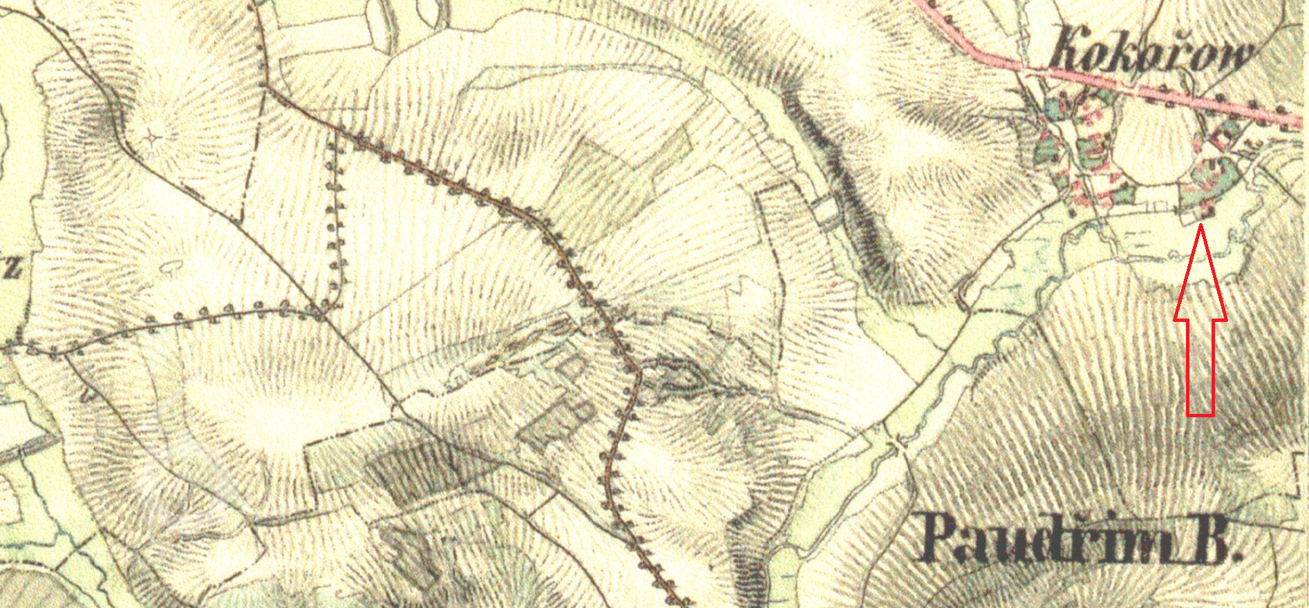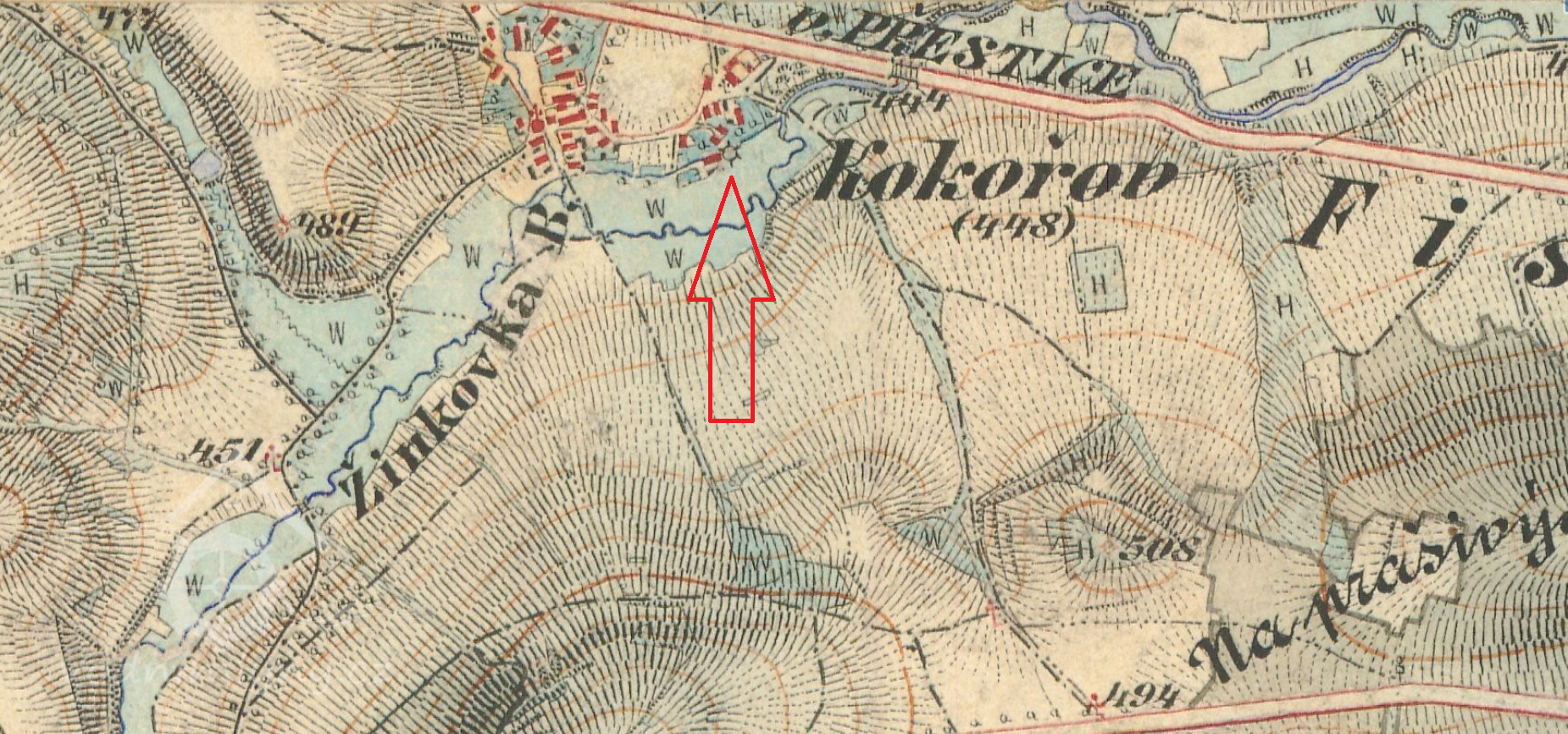 370 m východně od kapličky v Kokořově