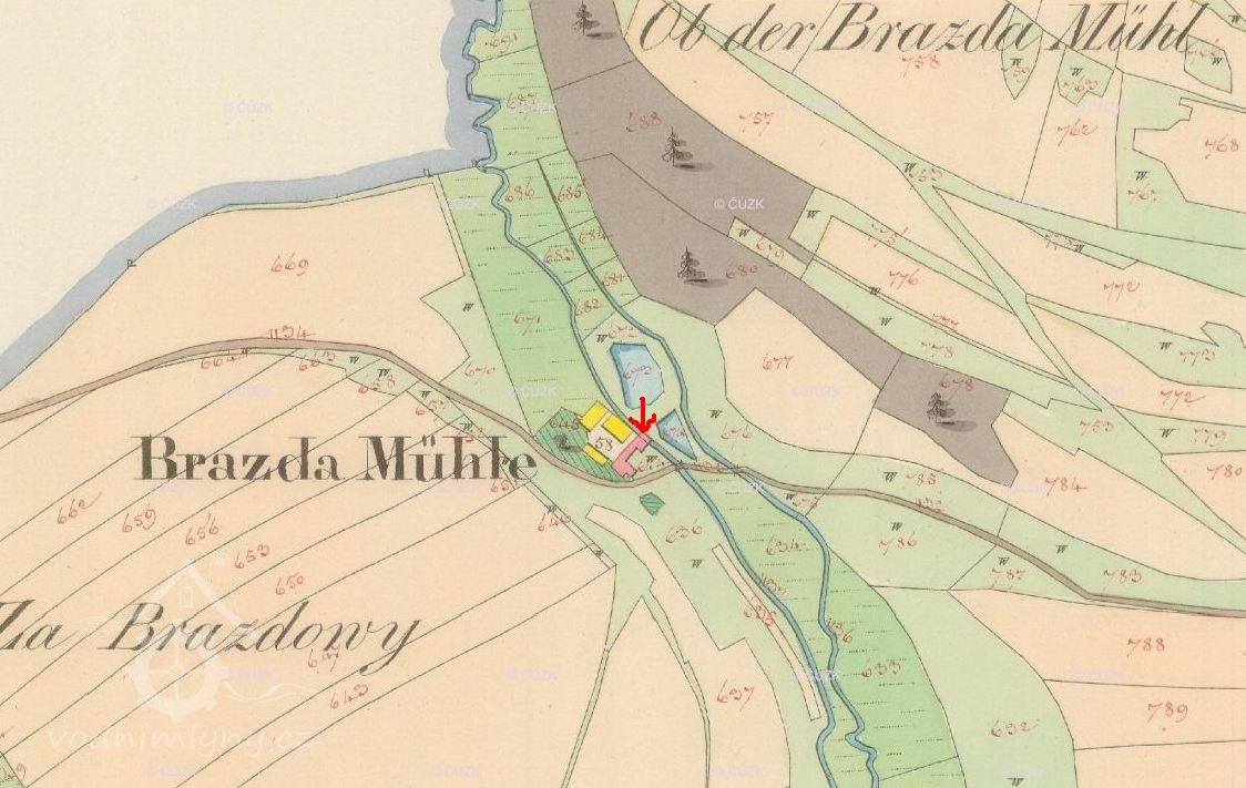 Zaznamenán na II. vojenském mapování a na císařském povinném otisku z r. 1835.